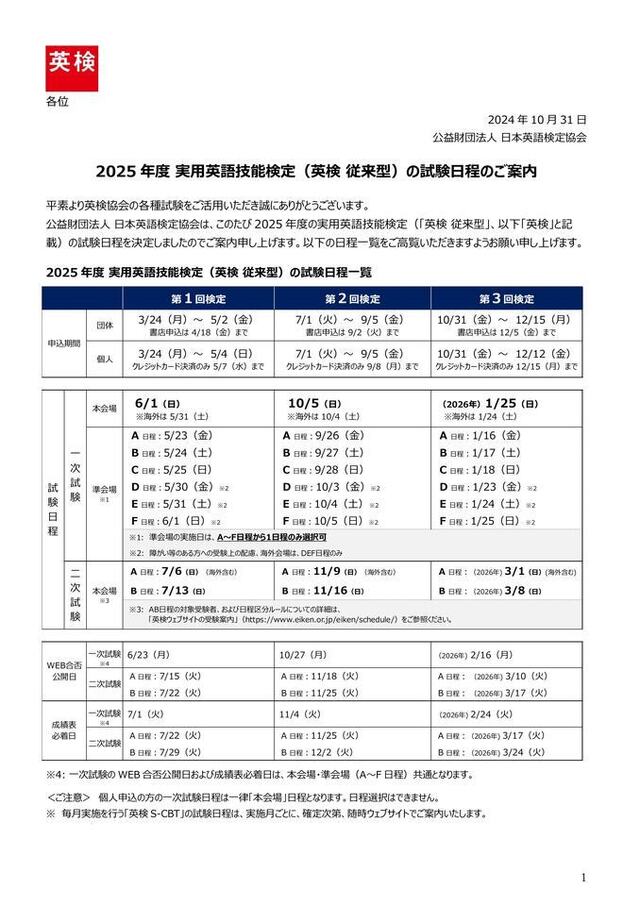 2025年度第3回英検の一般受験者の申込みを受付中です。